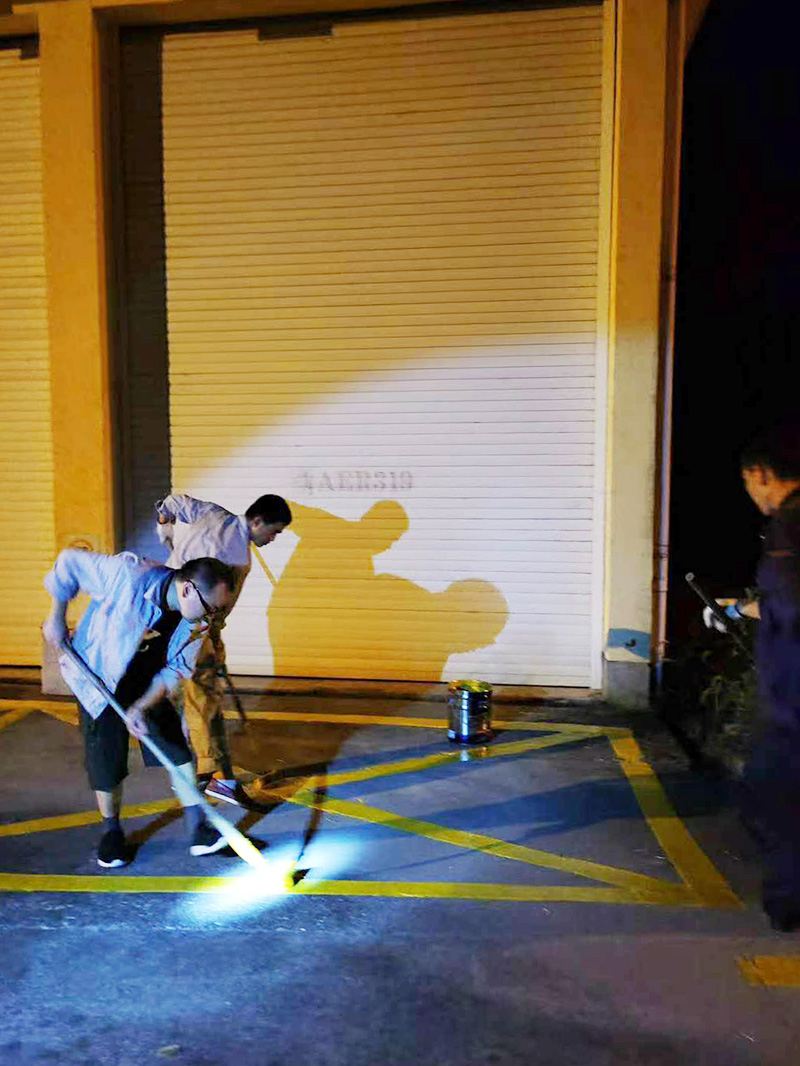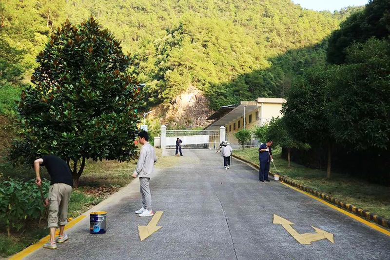 京安科技厂区内道路标识标线、工房内定制线自2017年统一刷新后因时间较长,已经大部分风化剥落。为了符合“7S”整理、整顿、清扫、清洁、素养、安全、节约的标准要求,公司决定对厂区内的标识标线风化部分进行清理、清扫、重新拉线、刷漆处理,考虑到节约成本因素,公司动员全体员工自行处理,公司党员干部积极发扬“干在实处,走在前列”优良作风,带头冲在一线。
